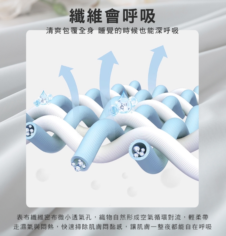 天絲棉的特色是柔軟親膚、透氣排濕性佳,讓整個睡眠過程中維持更舒適的體感溫