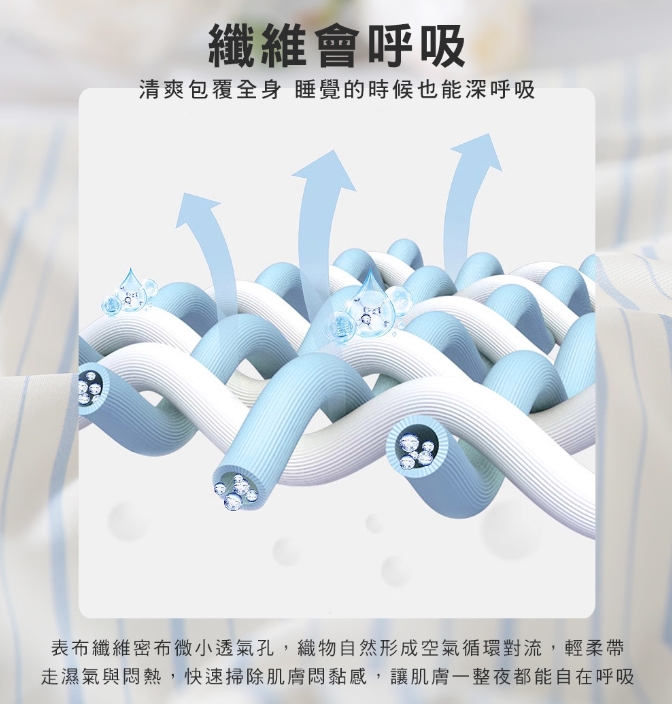 天絲棉的特色是柔軟親膚、透氣排濕性佳,讓整個睡眠過程中維持更舒適的體感溫