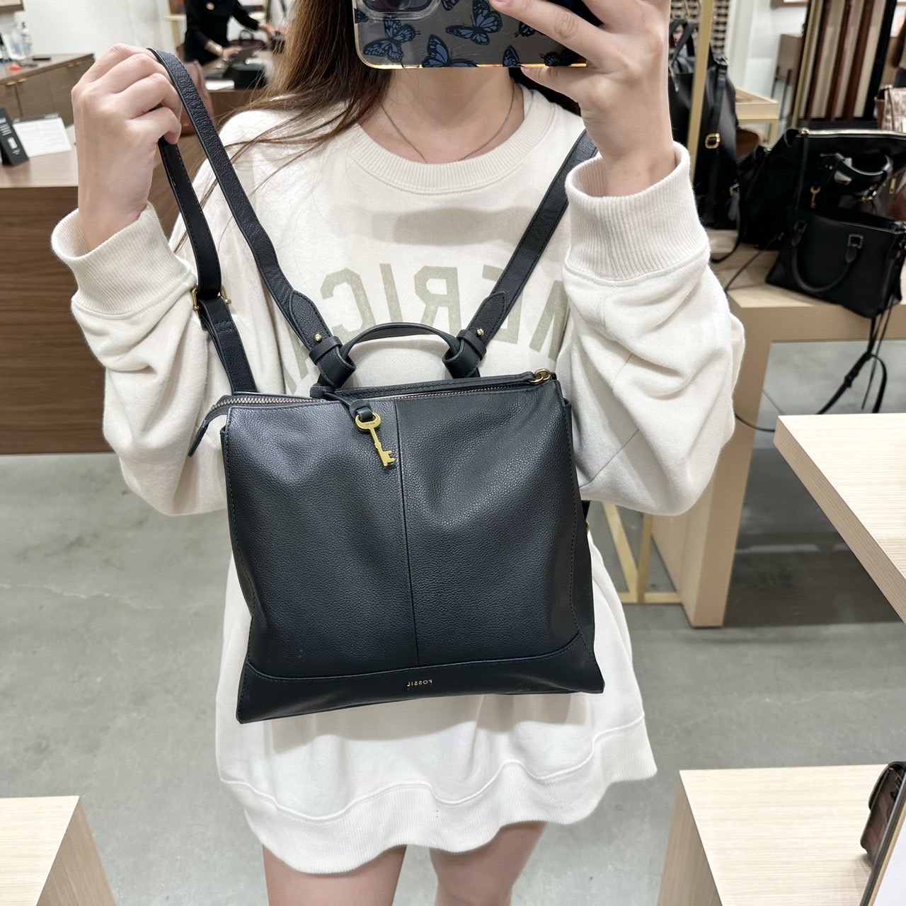 #FOSSIL全真皮後背包