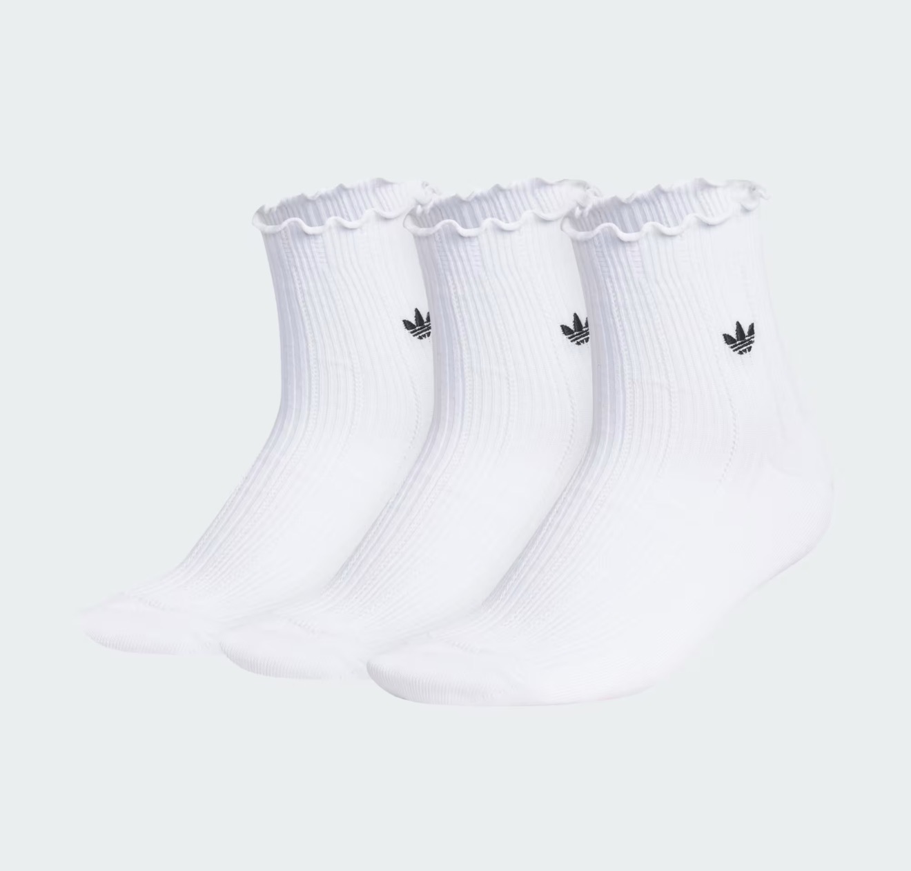 愛迪達adidas 白色木耳邊刺繡襪(三雙組)