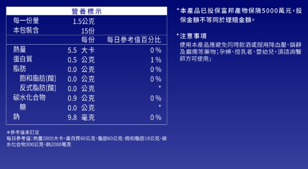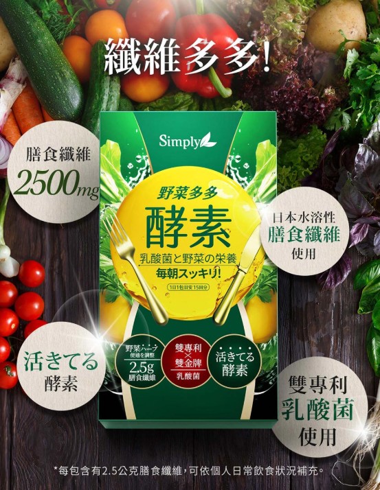 由3種高纖蔬菜製成,補充1包即內含2500mg膳食纖維