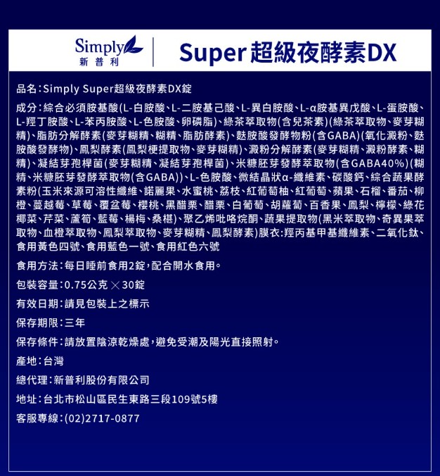 SIMPLY新普利夜酵素SUPER DX (30入/盒)
