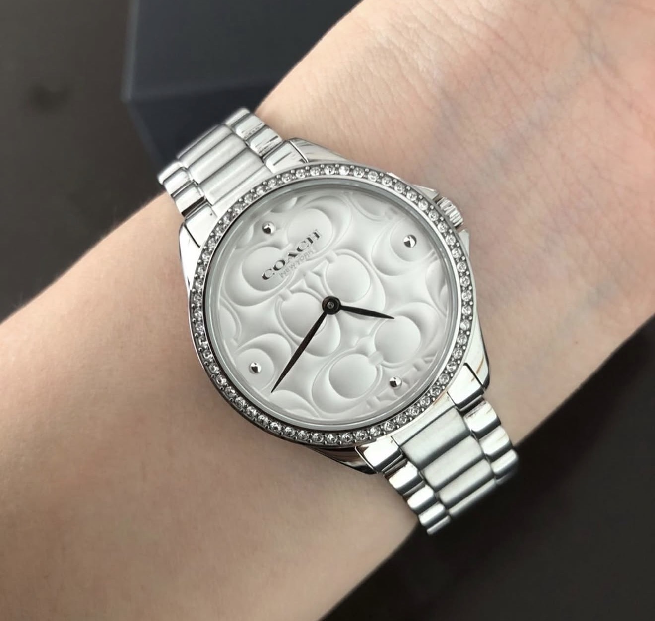 COACH Modern 銀色雙C時尚晶鑽女錶(14503070)