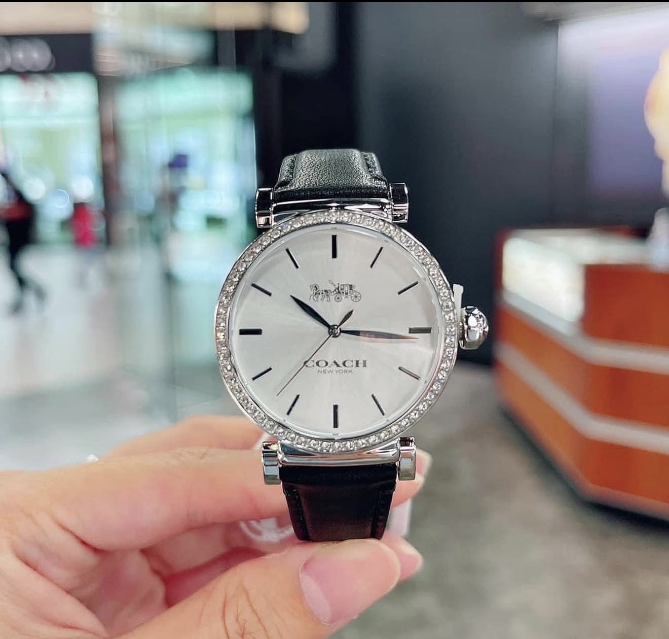 COACH 黑色水鑽真皮手錶 (14503868)