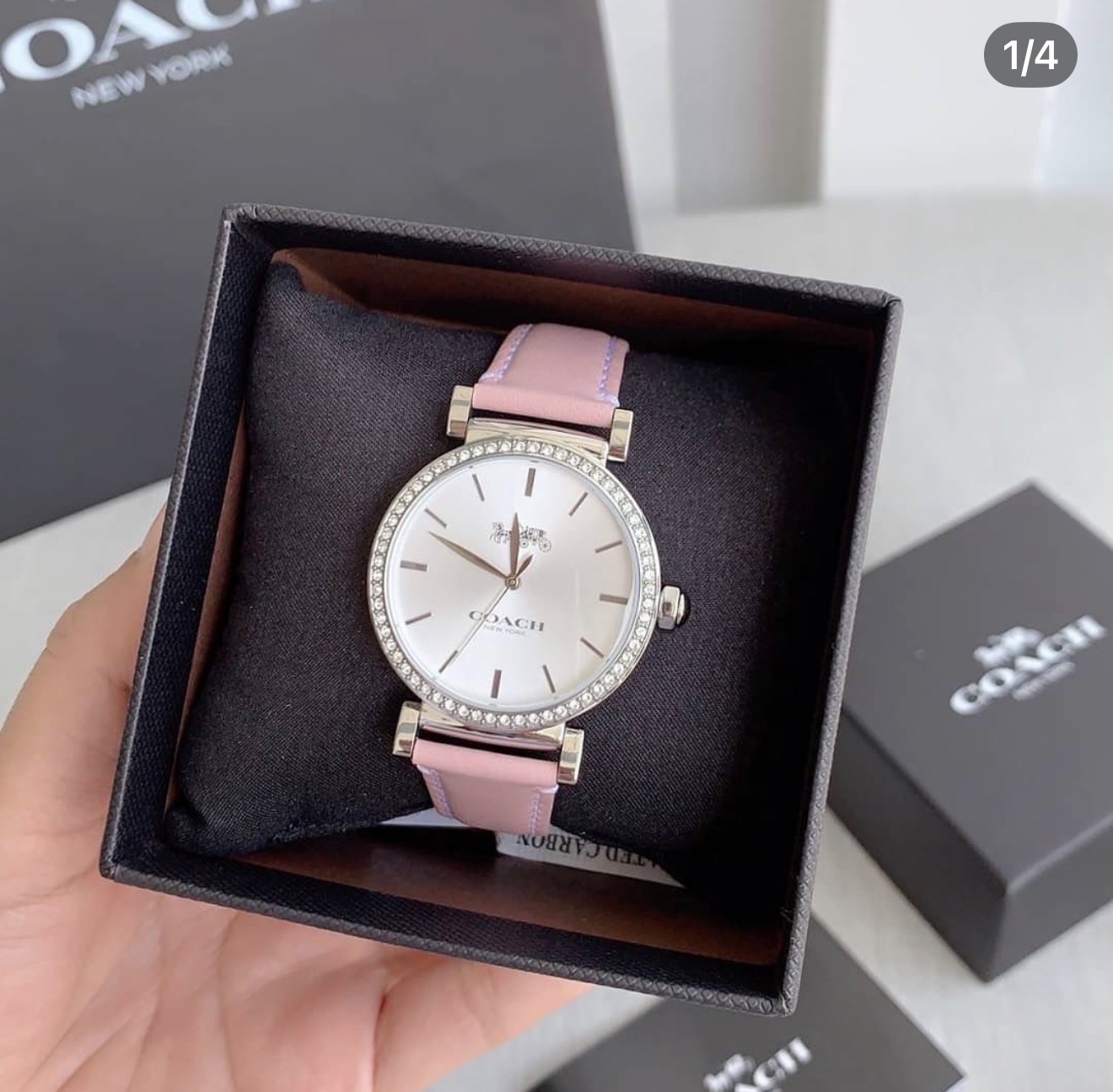 COACH 粉色水鑽真皮手錶 (14503550)